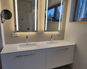Hochschrank, zwei Schübe, großer Spiegel und LED,